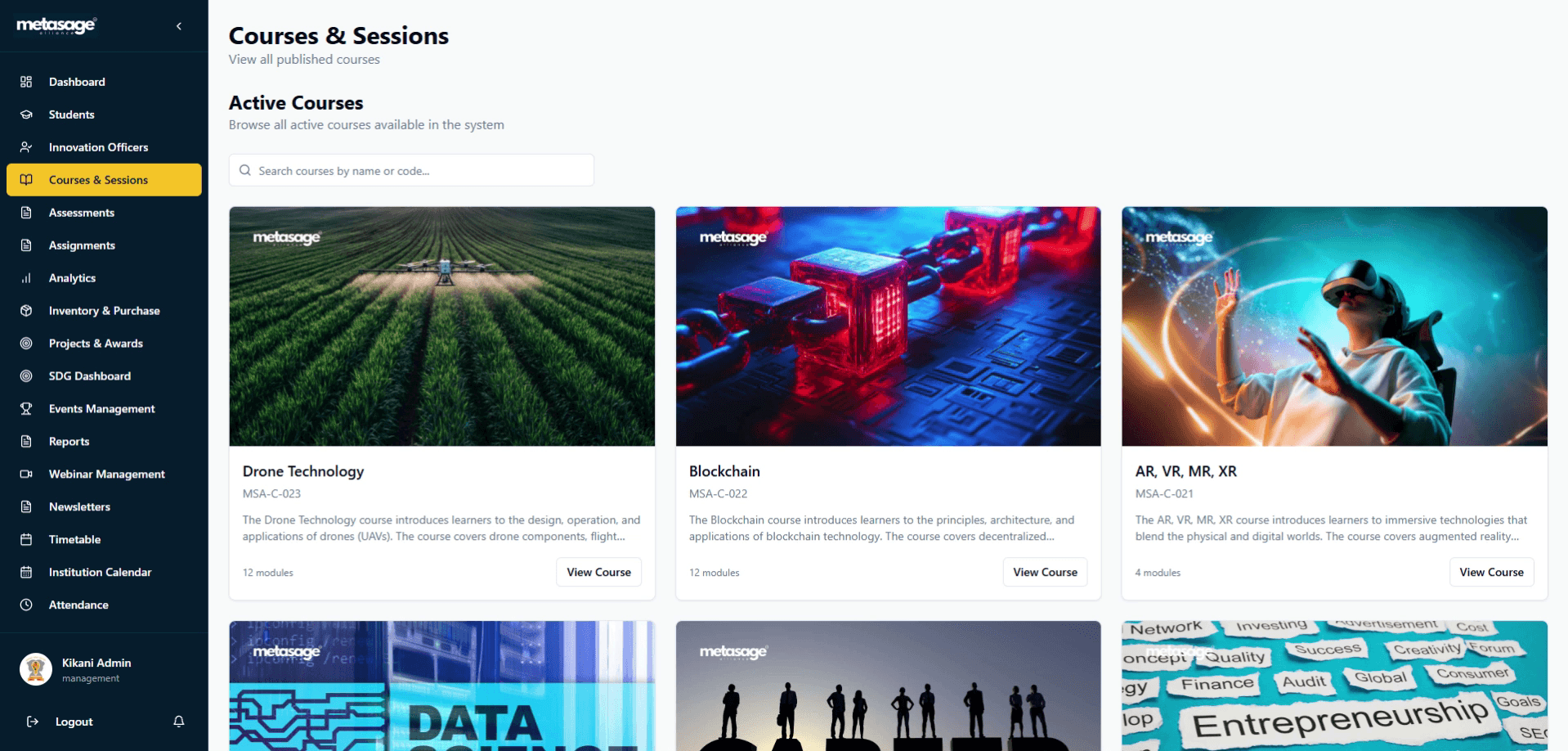 Curated AI, robotics, and innovation courses delivered through the MetaINNOVA learning platform.